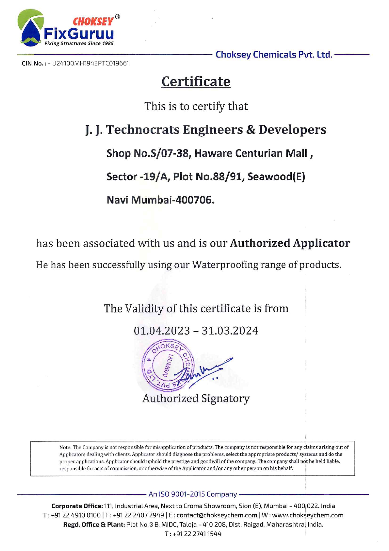 AUTHORIZED CERTIFICATE APPLICATOR